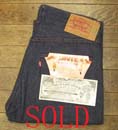 特徴:濃い色をした黒タグサイドのサイズ表示の入る前のタイプで人気のあるボタンフライのデニムパンツで両ミミ付きです。