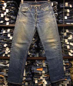 特徴:のり付けされたわけではなく(のリ付けするとやすりのようにアタル所が不自然に色落ちしするうえザラザラした質感が穿いていても気持ちよくないので当店ではおすすめしていません)自然にカッコよく色の強弱の出る濃いまま保存されていたようで長い間保存されていたようで乾燥した質感の501でトップボタン裏は数字の6でスモールボタンは足長RのウエストチェーンステッチSタイプ“Eデニムパンツでヒップポケットのアーキュエットステッチもきれいに残っています。