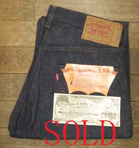特徴:ベルトループずれのLEVI'S 501XXでトップボタン裏はアルファベットのWでスモールボタンは足長Rで全体のステッチはオレンジxイエローの2色使いです。