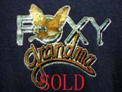 特徴:紺ベースにアメリカの俗語でオシャレで魅力のある女の人に対する褒め言葉のFOXYなGrandmaのラメ入りラバプリントで女の人でも似合う美人な顔をしたキツネのキャラクターTシャツです。