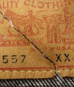 特徴:濃い箇所が残っているレザーパッチのXXらしいカッコいい色をしたベルトループがセンターでトップボタン裏は点々点でフロントポケット裏のリベットはアルミの時代よりも古い銅で赤タブは均等Vで皮パッチの文字は薄っすらと読み取ることができます。