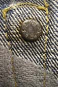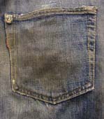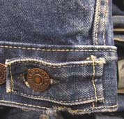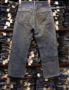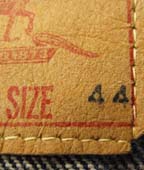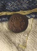 特徴:色の強弱のあるヴィンテージらしい色落ちをしたLEVI'S大戦モデルデニムパンツでリベットは無刻印と全体の文字が小さく中央に文字が寄ったL.S.CO.S.F.でポケット裏地は多少目の粗いモノで赤タブは片面で隠しリベットはこの年代に見られるは大戦ならではの少し丸みを帯びたモノでスモールボタンはLEVI'Sボタンの大戦でも初期型でウエストサイズが小さいのでスモールボタンは3個です。