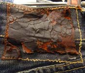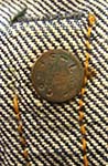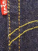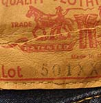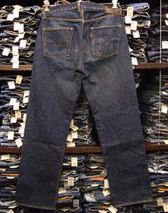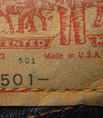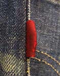 特徴:濃くカッコいい色をした人気の赤タブ片面の501XX皮パッチデニムパンツでコインポケットはミミ付きです。