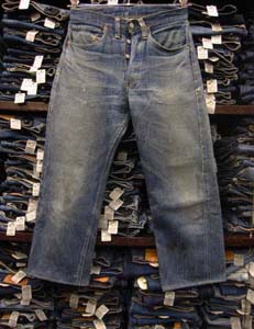 特徴:人気のある大戦モデルの中でもレアなポケットの内布がミミ付きのデニムシャツになったデニムパンツでトップボタンは月桂樹のドーナツでスモールボタンはLEVI'Sボタンで大人が穿きやすい良いサイズです。