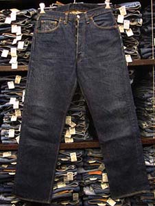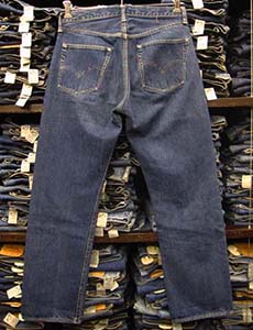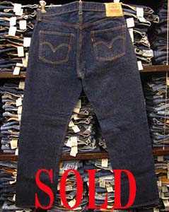 特徴:まだ毛羽立ちのみられる真っ紺の501−501ダブルネーム“E”ウエストシングルデニムパンツでトップボタン裏はアルファベットのWでスモールボタンは足長Rでヒップポケットは人気のあるオレンジxイエローの2色使いで赤タブは均等Vでアメリカ人からするとビックイ―だとEの文字自体が大きいと言う意味になりますが今やアメリカでも“E”(ビック イ−)で通用する用語になったヴィンテージデニムパンツです。