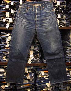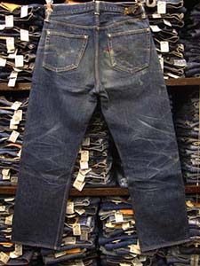 特徴:完成されたヴィンテージらしいアタリのでたカッコいい色落ちのヴィンテージ好きが一度は穿いてみたいと思うLEVI'S大戦モデルデニムパンツで赤タブは片面で隠しリベットはこの年代に見られる大戦ならではの少し丸みを帯びたモノでスモールボタンはLEVI'Sボタンの大戦でも初期型で大人が穿いてカッコよく決まる良いサイズです。
