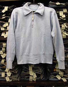 特徴:襟付きの水色でさりげない無地のリブ長ヴィンテージスウェットシャツでZIPPERはLAMARの片爪です。