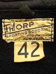 特徴:NEW YORKの452FIFTH AVEにあったTHORP SPORTING GOODS製でこの年代の特徴の1つでもあるザラザラとした質感のウール地でニューヨーク州WEST POINTにあるUnited States Military Academy(米国陸・海・空軍士官学校)通称WEST POINTのスクールカラーでもある黒ベースにゴールド(濃い黄色)のサテンのワッペンにゴールド(濃い黄色)のラインのプルオーバースウェットシャツでZIPPERはダ円形のUSA TALONでリブは伸縮性のあまりない厚みのあるモノです。