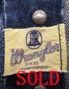 特徴:ラングラーですがヒップポケットがアーキュエット ステッチ(LEVI'Sの商標登録)のタイプです。皮は縮んで読めなくなっていますが内巻きです。内タグもWの文字が内巻きです。