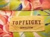 特徴:オフホワイトベースにハワイの風景がポストカード(絵葉書)のように描かれた南国らしい鮮やかな配色のTOPFLIGFT製ヴィンテージレーヨンハワイアンシャツです。