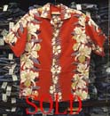 特徴:赤ベースに麦わら帽子とフラワープリントの夏らしい柄のレーヨンハワイアンシャツです。