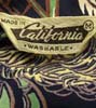特徴:ダークなバーガンディーベースにポップアートのような原色のお洒落な配色のLOS ANGELESのCALI-FAME製レーヨンハワイアンシャツでボタンはバンブーです。