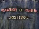 特徴:タテ落ちしたデニムシャツ位のオンスのデニム地に帆船の縄のような丸紐のBIG BAGでWALTER G KLOUDAのネームと36310937のステンシル入りです。
