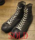 特徴:現存していること自体が稀少な黒のキャンバス地のMADE IN U.S.A.SPALDINGスニーカーでアンクルパッチは白のA.G.SPALDING&BROS.TRADE MARK SPALDINGでボディーはシンプルなデザインでシューレースホールの補強布は黒のゴムでヒールパッチはネームバーとして使えるようクリーム色の四角でアウトソールはレンガ色の当時の特徴のひとつでもあるつま先は反り上がったデザインです。