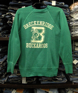 特徴:アメリカのスポーツ用品メーカーとして1876年に創立されタグにFOR OVER 60 YERSと明記されていることから1936年製の501XXのバックルと同じ時代のSPALDING製ウール地スウェットシャツでこの年代の特徴でもあるステッチのピッチは細かく脇の下には動作がしやすいように伸縮性のある三角のウール地のリブがはめ込まれ背中には書体のカッコいいNEW YORKのフエルト文字のSPECIALな1枚で無理やりフエルトの面を前にして着ることもできます。