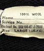 U.S.ARMY AIR FORCE(アメリカ陸軍航空隊)のパイロットに支給されたものは網目が細く肩・袖・裾に横編みが入りますがこちらは網目の太い袖・裾リブが1目ゴム編のリブ短でSPEC.NO.8−50−DでA.C.ORDER NO.13864の小振りな黒タグが付いています。
