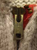 特徴:アメリカの娯楽として60年代にブームになっていたボーリングの柄のカウチンセーターでヴィンテージ好きに人気のある柄で淡いベージュに対照的な鮮やかな赤の切り替えボディーでZIPPERはU.S.A.TALONです。