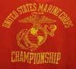 特徴:赤ベースに黄色のプリントのUNITED STATES MARINE CORPSミリタリーTシャツで今っぽく大き目で着ることができるサイズ感です。