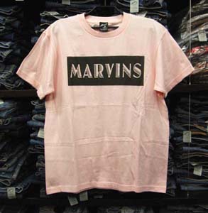 特徴:デニムパンツとの相性のいい品のあるライトピンクベースに黒のシミ込みプリントの人気のMARVIN'SオリジナルTシャツで背中にもロゴが3段入ったカッコいいデザインです。