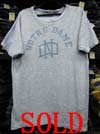 特徴:MADE IN U.S.A.100% COTTONで紺が自然に退色した色ベースに黄色の両面ベタプリの配色のバランスのいい袖ライン入りTシャツです。
