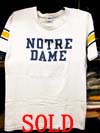特徴:白ベースにフロントが紺のNOTRE DAMEしみ込みプリントで袖のラインはベタプリのチャンピオントリコロールタグです。100%COTTON MADE IN U.S.A