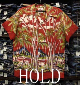 特徴:濃紺ベースに赤に染まったダイヤモンドヘッドと長く伸びた木のホリゾンタル柄のHONOLULU BEACHに当時あったTHE Liberty House Waikiki社製のヴィンテージハワイアンシャツです。