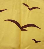 特徴:多少厚手のライトイエロー色のレーヨン地に可愛らしいまん丸い目の3匹の熱帯魚が背中一面にセンスの良いタッチで描かれているあまり見かけないめずらしい柄のアメリカメーカーB.V.D.のヴィンテージハワイアンシャツでフロントのポケットは下の方に付くタイプです。