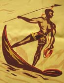 名称:1940年代 VINTAGE 槍(やり)&盾(たて)原住民柄 レーヨンHAWAIIAN SHRTS