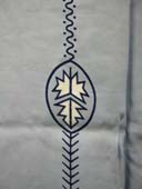 特徴:ハワイの原住民の男の人が槍(やり)と盾(たて)を持った柄の多少グレーがかった黒ベースのロングスリーブMOHAWK SPORTSWEAR社製のレーヨンハワイアンシャツです。