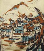 特徴:この時代にお洒落なハワイアンシャツを作っていた事でもお馴染みのKAHANAMOKU社製の紺ベースに赤に染まったダイヤモンドヘッドと大きな長く伸びたヤシの木やハワイの藁ぶき小屋などHAWAIIの風景がプリントされた品のある配色のホリゾンタル柄のヴィンテージハワイアンシャツです。