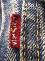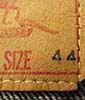 特徴:1949年から50年代初期にかけてのLOTナンバーとサイズ表示も赤文字(この後101−Jとサイズ表示の数字REGULARの文字が黄色になる)で囲みステッチが黄色糸のサイズ表示入り赤タグ初期型のアタリの出る前の真っ紺のデニムJKTです。胸の黒タブは丸RもMRも付く前の時代の物です。