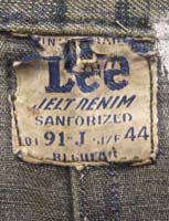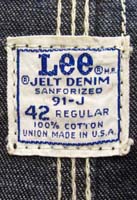 特徴:大人のLeeの101−J赤タグと同じように丁寧に作られた50年代らしいカッコい色落ちをしたJUNIOR BOY’S版赤タグ109−JBで胸の黒タブは丸Rなしでボタンは多少彫りの深いLee RIDERSの文字でボタン裏は点々点で左サイドに子供の名前を書くレザーのネームバーが付いていています。