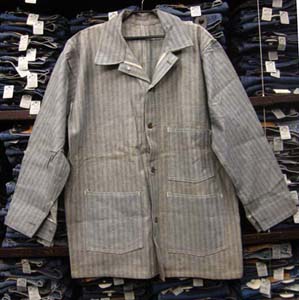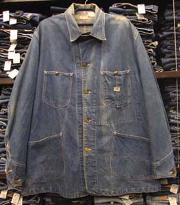 特徴:NAVY(アメリカ海軍)のカバーオールでボタンは月桂樹のドーナツで襟はショールカラーでポケットはパチポケでステッチ近辺にはポコポコしたヴィンテージらしいアタリが出ています。