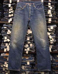 特徴:全体の色は薄目ですがヴィンテージらしいポコポコしたアタリが両サイドにでた501“E”デニムパンツでトップボタン裏は数字の6とアンダーバーでスモールボタンは足長Rでヒップポケットのアーキュエットステッチはきれいに残っています。