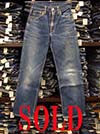 特徴:色の強弱のあるアタリのでた501XXパンツでトップボタン裏は点々点でスモールボタンは足長Rで全体のステッチはオレンジxイエローの2色使いで赤タブは刺繍の丸Rのヴィンテージデニムパンツです。