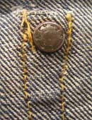 特徴:全体のステッチがオレンジxイエローの2色使いの501XXでコインポケットはミミ付きでスモールボタンは足長Rです。