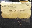 特徴:濃い色をしたLeeの200番の初期型でサイドにサイズ表示の黒タグの付くタイプです。皮・黒タブ・黒タグにはMRが入りトップボタン裏は数字の25でZIPPERはオートマチックTALONでミミ付きです。