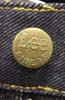 特徴:人気の濃い色をしたサイズ表示が入る前の黒タグサイドTM入りタグのデニムパンツでトップボタン裏はアルファベットのKCでヒップポケットのピスタブはマルRでヒップポケット内に白の当て布があり全体のステッチはオレンジxイエローの2色使いです。