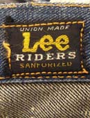 特徴:ヴィンテージらしいカッコいい色落ちをしたLeeの人気の101黒タグサイドのサイズ表示の入る前のタイプで両ミミ付きです。