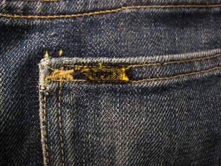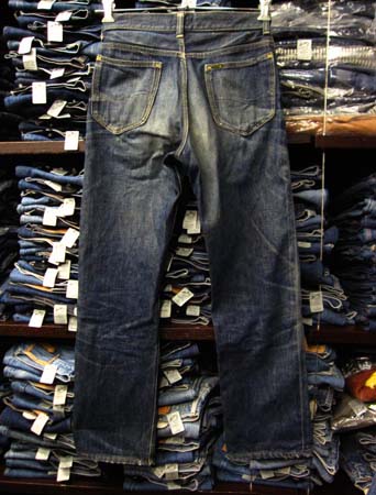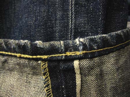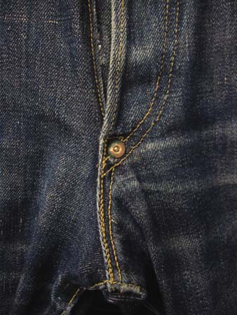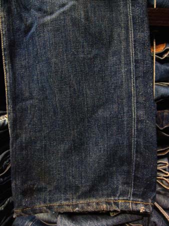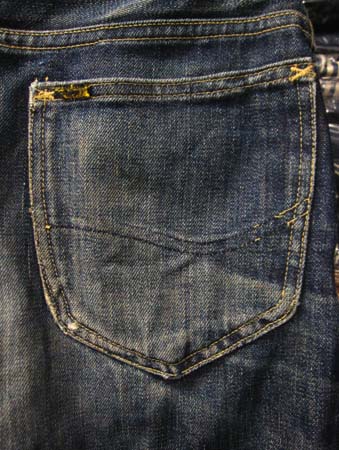 豪快に色落ちする右綾(正面から見たときに右上がりに走っているデニム地でソフトな色落ちの左綾に比べて豪快に色落ちする )