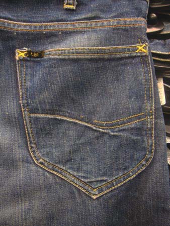 ![]() ヒップポケットは白の当て布付き |