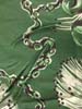 特徴:緑ベースにオレンジとグレー・白の不均等のラインが描かれたVan Heusenのロングスリーブレーヨンハワイアンシャツです。