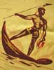 特徴:紺色ベースにハワイの海で槍で漁をする男の人やハイビスカスやパイナップルやハワイアンフラワーの花摘みをする女の人と巻貝のカルフォルニアSTYLEらしい品のある配色で飾っても絵になる柄です。