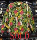 名称:1950年代 VINTAGE DEL MAR パイナップル&バナナ柄 レーヨン HAWAIIANシャツ ロングスリーブ
