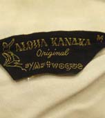 特徴:カメハメハと並ぶ有名ハワイアンメーカーKAHANAMOKUの白ベースにストライプのお洒落シャツでタグは1949年にニューヨークのシスコ社に移行されたMADE BY CISCOの文字がタグに入り襟は40年代のロングポイントに比べると多少スクエアな50年代のレーヨン素材です。