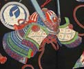 特徴:当時、日本で作られたくすんだ配色のハワイアンシャツではなくHONOLULU HAWAIIでデザインされたKRAMER’S製の人気の黒ベースに武士が自身の存在を誇示し信念や威厳を示す役割だった力強さを感じる長く伸びた角の兜が大きくカッコよく描かれまた一度つがいになると何年も同じパートナーと寄り添い長寿の象徴で縁起物とされている丹頂鶴や太鼓の音が魔物を祓うとされている太鼓がバランスよく描かれたカッコいい和柄のレーヨンハワイアンシャツで襟はこの年代の特徴の一つでもあるロングポイントでボタンはココナッツで身頃裏のミミにはan original Hawaiian creation bymalihini sportswearの文字がプリントされています。