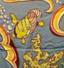 特徴:40年代のロングポイント襟に比べると若干スクエアな襟の50年代製の紺ベースでフロント中心が巻貝のボーダーで全体に熱帯魚がプカプカ泳いでいる涼しげなデザインのMADE IN U.S.A.(アメリカでデザインされアメリカで作られた)ARROW製RAYONハワイアンシャツです。