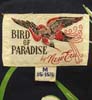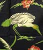 特徴:アメリカのメジャーリーグベースボール公式CAPのNEW ERAですがその中の当時のアパレルブランドBIRD OF PARADISE製の人気の黒ベースに鶴と椿の花のロングスリーブのヴィンテージ和柄レーヨンハワイアンシャツで襟はロングポイントで和柄ですが当時の日本製のくすんだ配色ではなくアメリカ製らしいパキッとした鮮やかな配色です。