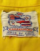 特徴:兜や鶴や太鼓や家紋のような当時のアメリカ人が描いた上手でカッコいい和柄のMADE IN HAWAII Malihini製です。