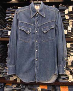 特徴:濃い目の色をしたMADE IN U.S.A.のBLUE BELLマーク入りMAVERICK(マーベリック)の100%COTTONの質感のデニムシャツです。